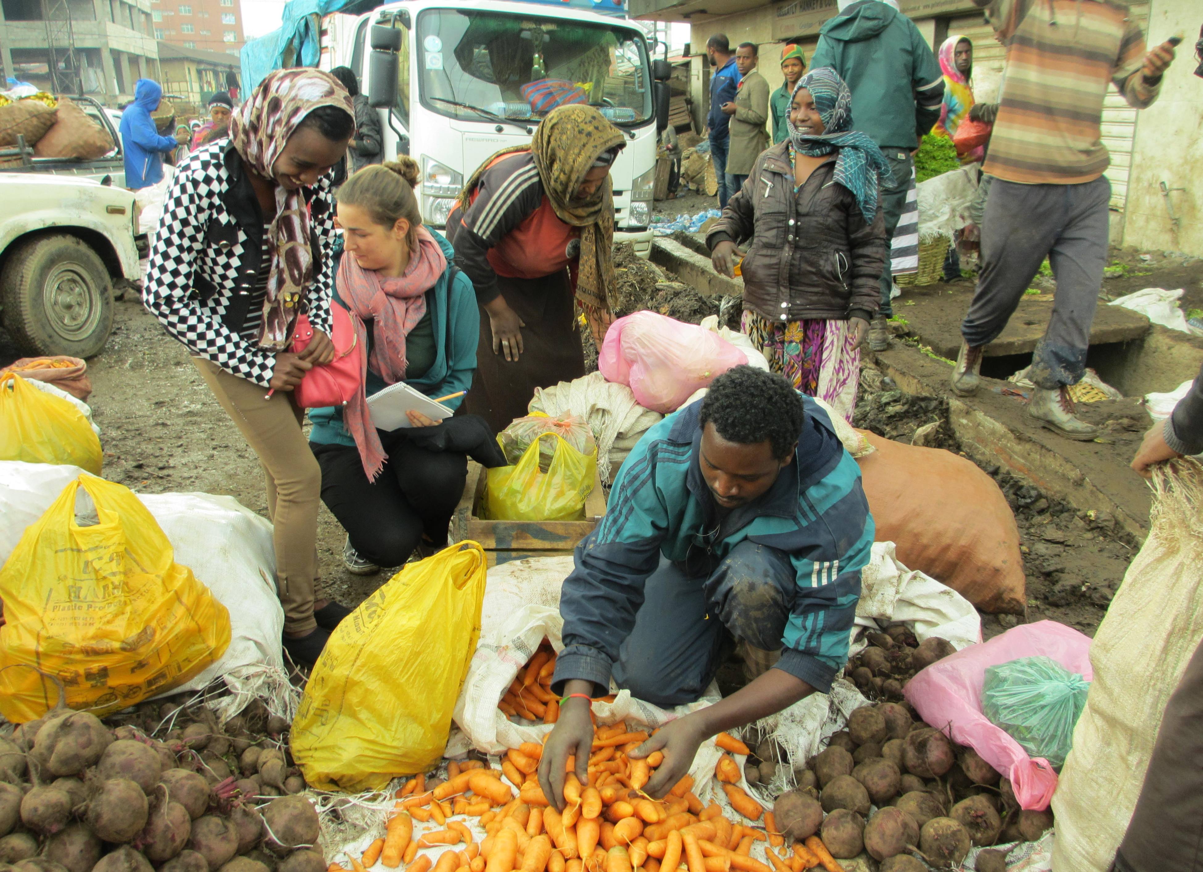 Humboldt-Universität zu Berlin | Thaer-Institute | ValueSeC Project | Documentation | Impressions from the Ethiopian-German study project in 2015 | Students conducting interviews at the vegetable market in Addis Ababa Students conducting interviews at the vegetable market in Addis Ababa Vegetable market Addis2.JPG image/jpeg Type image/jpeg Dimension Dimension 3899x2825 Size File size 1.2 MB Download View full-size image